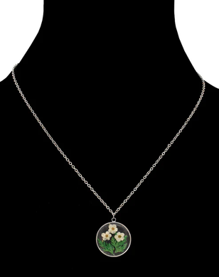 Pressed Flower Round Necklace - Stainless Steel
