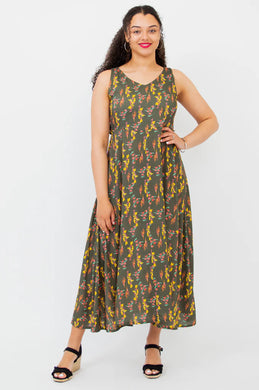 Trailing Leaves Tiered Dress - Bugundy (Apricot)