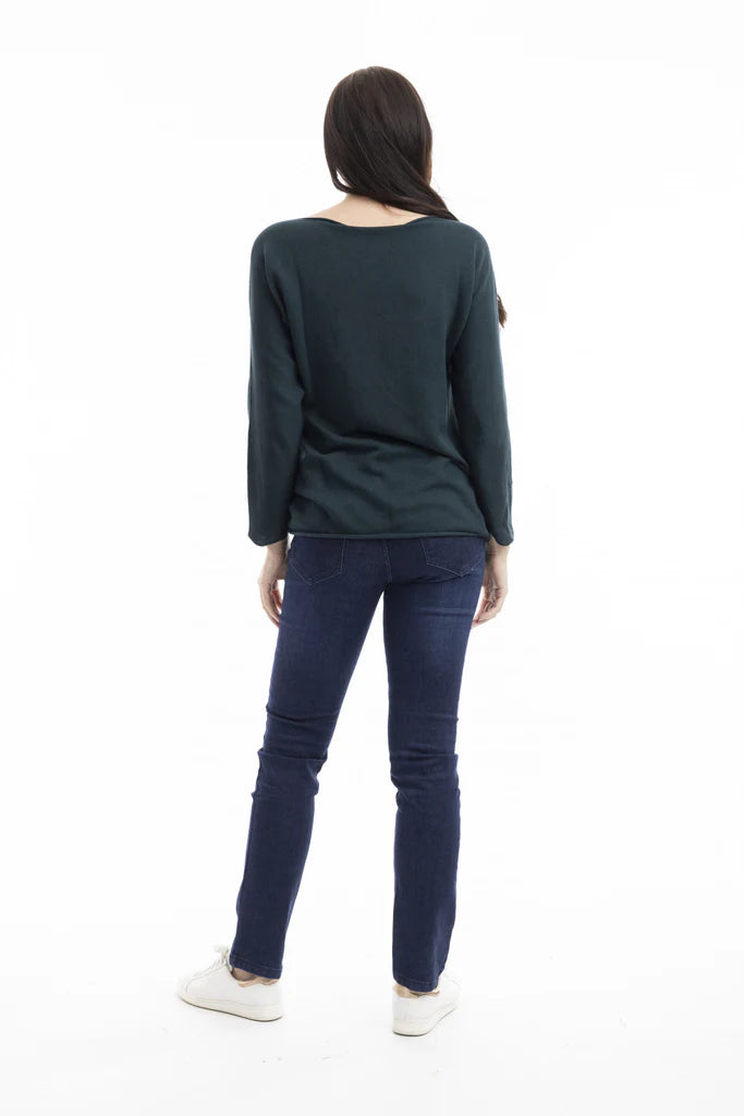 Fine Knit Boatneck Sweater - pine (Orientique)