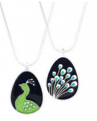 Peacock Enamel Reversible Necklace